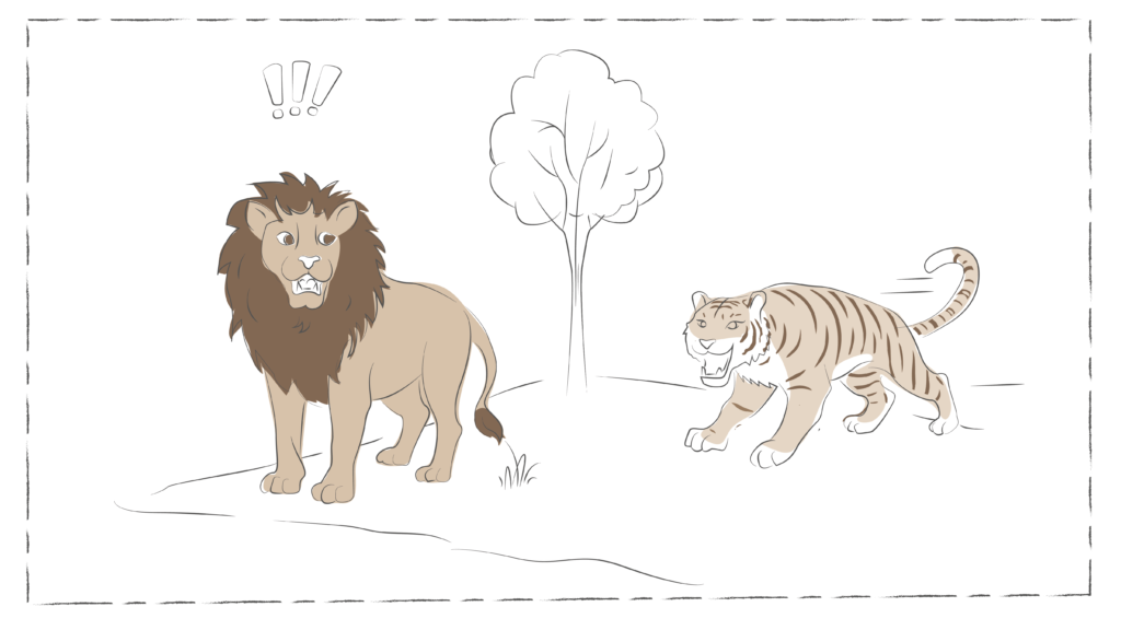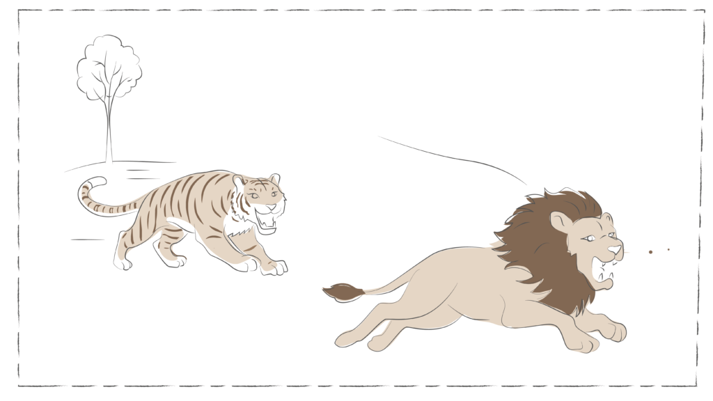Dieren in het wild demonstreren dit beschermingsmechanisme heel mooi. Kijk maar eens naar een hert. Op het moment dat het hert staat te grazen, voelt het zich veilig – in deze staat kan het zich ontspannen en contact maken, bijvoorbeeld met andere herten. Maar zodra er gevaar ontstaat, bijvoorbeeld in de vorm van een tijger, weet het in een fractie van een seconde wat het moet doen: vluchten. Het hert maakt zich klaar om weg te komen: de hartslag gaat omhoog, zodat het bloed sneller door het lijf gepompt wordt en spieren zich kunnen aanspannen – klaar voor de sprint. Als vluchten geen optie is, probeert het hert te vechten. Bij een tijger maakt het dier niet veel kans, waardoor op dat moment het bevriezingsmechanisme aan gaat: zodra het in de bek van de tijger terechtkomt, wordt het heel stil en doet alsof het dood is. Hiermee maakt het hert nog een kans om te overleven. Al met al is dit dan ook het doel van het systeem: ervoor zorgen dat je de situatie die gaande is, overleeft.
