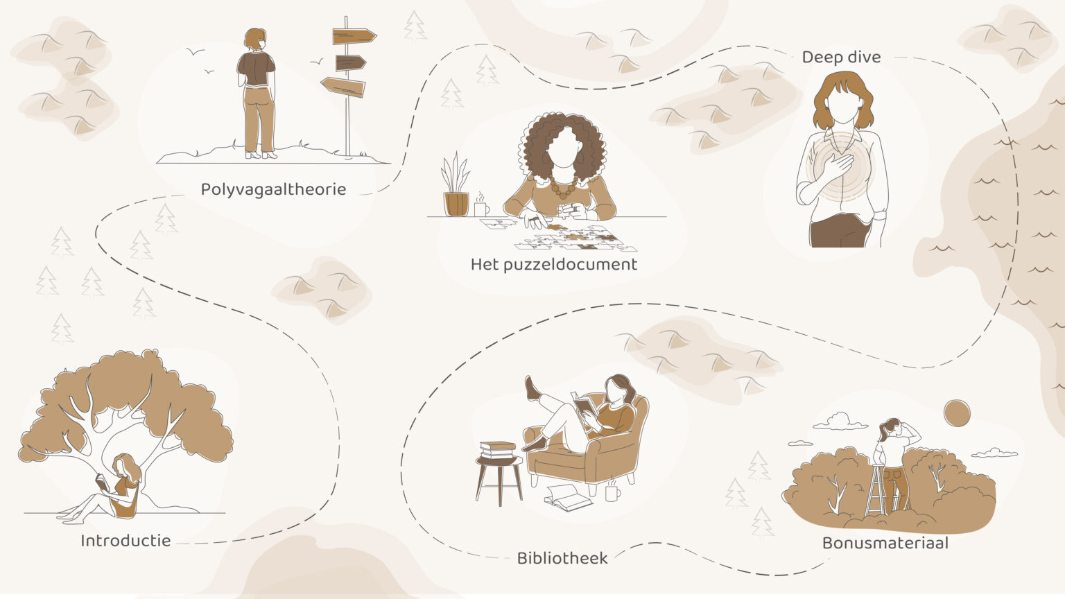 Voor de liefhebbers van achtergrondkennis ligt de bibliotheek klaar met uitgebreide informatie over de polyvagaaltheorie, Somatic Experience, de ei-theorie van Ruppert en opstellingen. Hier kun je de wetenschappelijke basis van alles wat je hebt geleerd nog beter begrijpen.